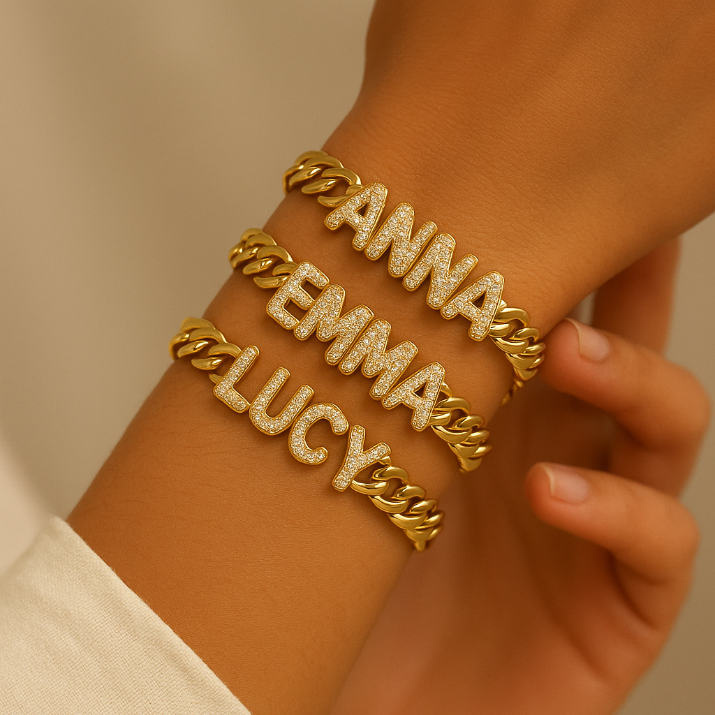 Personalized Bubble Letter Bracelet | Custom 14K Gold Name Bracelet | My Charm Lab