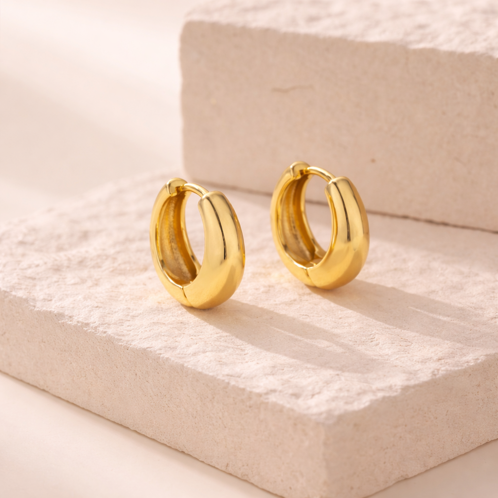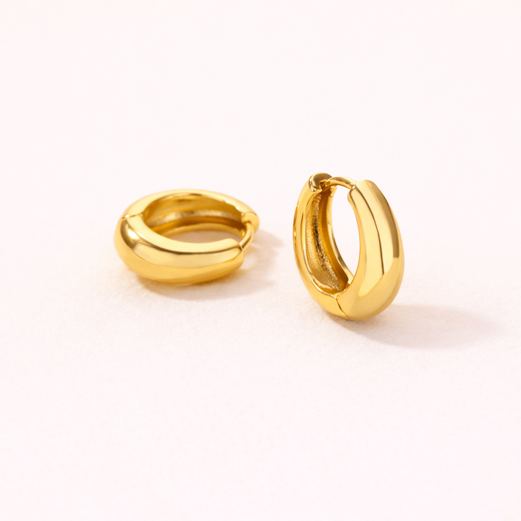 The smooth, rounded hoop shape adds a modern, refined touch to any outfit without overpowering your look.