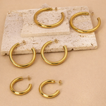 Crafted from high-quality stainless steel with a polished finish, these hoops are water & sweat resistant, durable, and made for everyday wear. Their smooth, rounded silhouette reflects light beautifully, creating a clean and confident look.