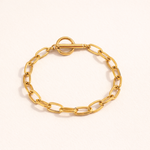The oval toggle bracelet brings modern elegance.