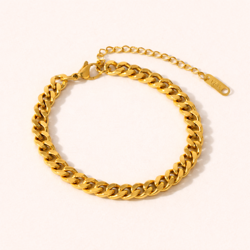 The bold curb chain adds structure and shine.