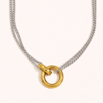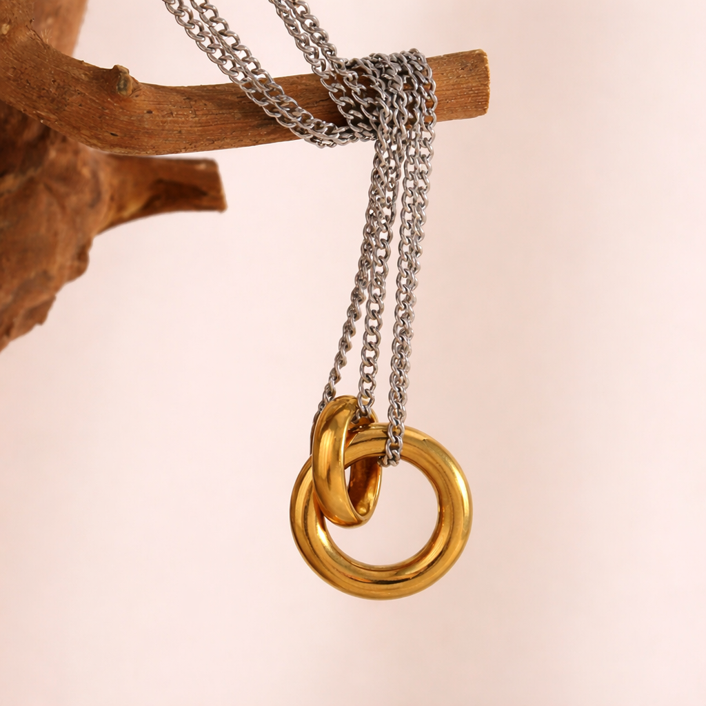 This elegant pendant necklace by La Muses features a refined round design paired with a sleek double O-chain for a modern, balanced look. Crafted from high-quality stainless steel, it offers durability, comfort, and a polished finish that elevates everyday outfits as well as office and evening styles.